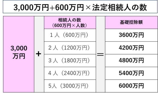 3,000万円 + 600万円×3人 = 4,800万円 が基礎控除額になります。